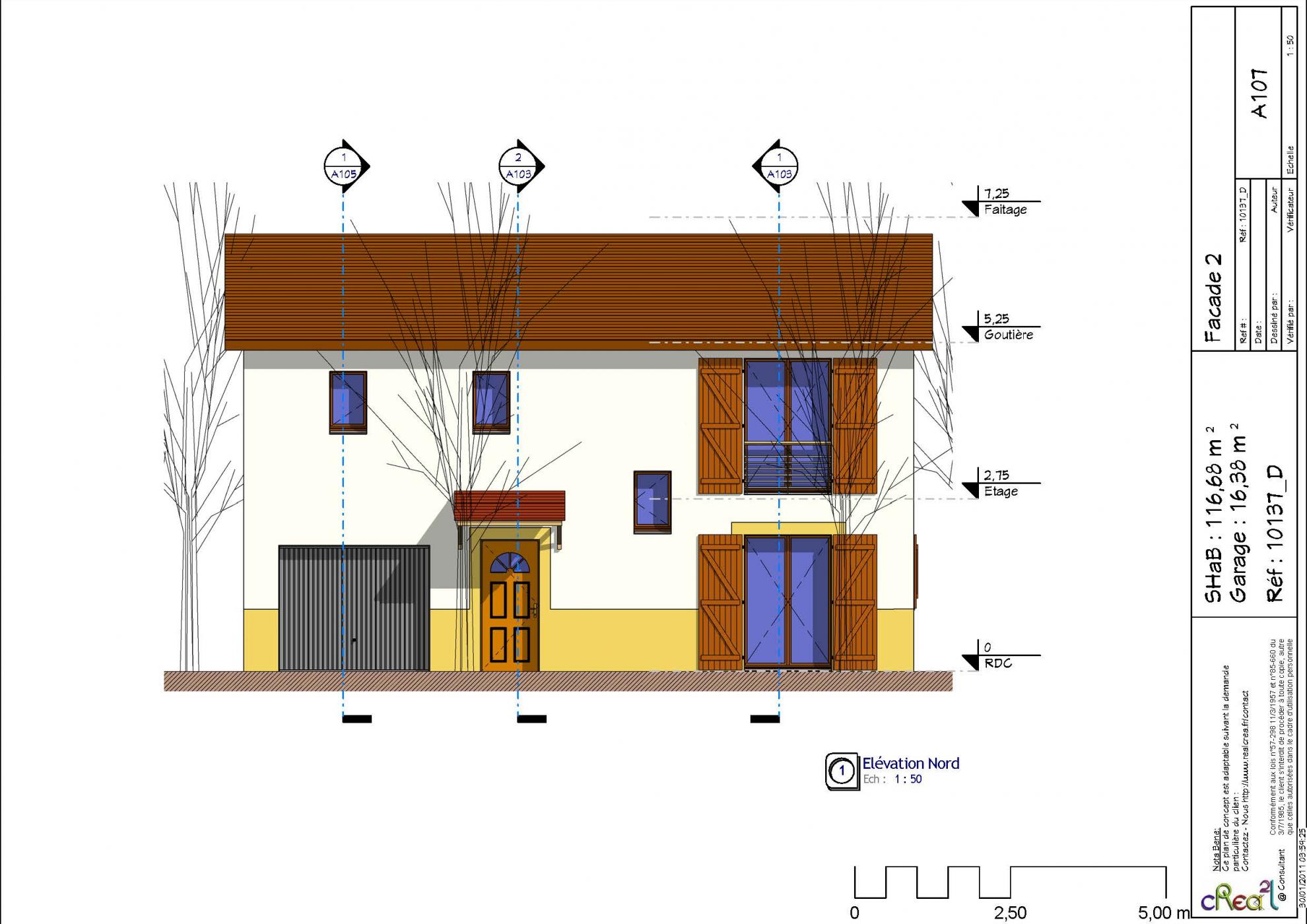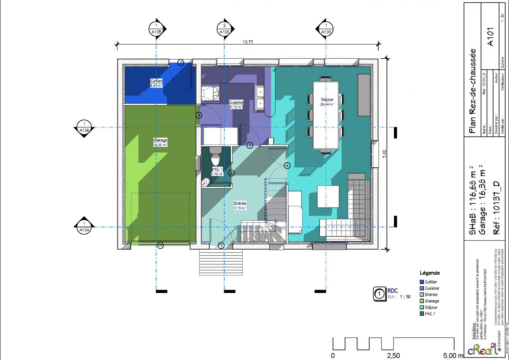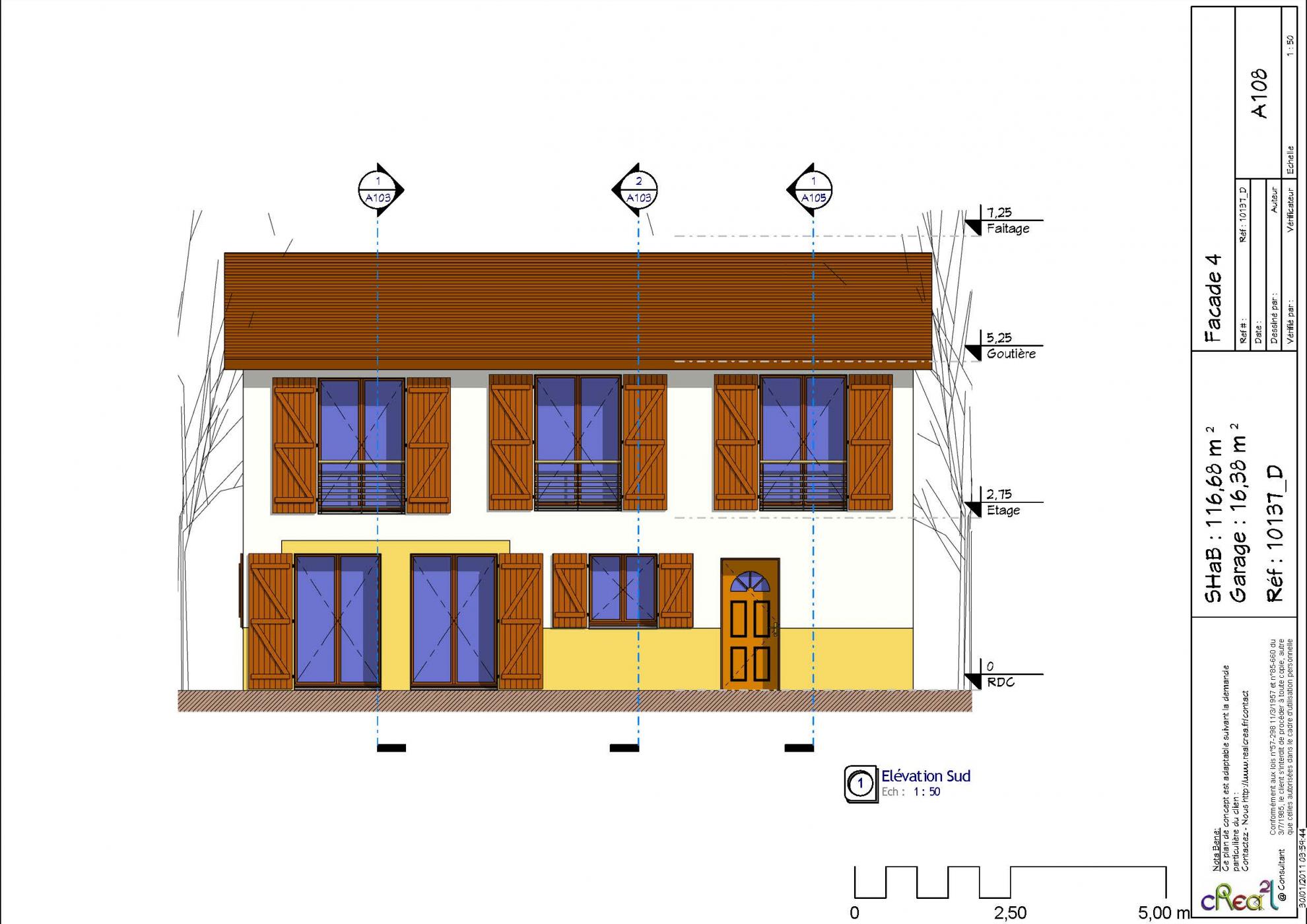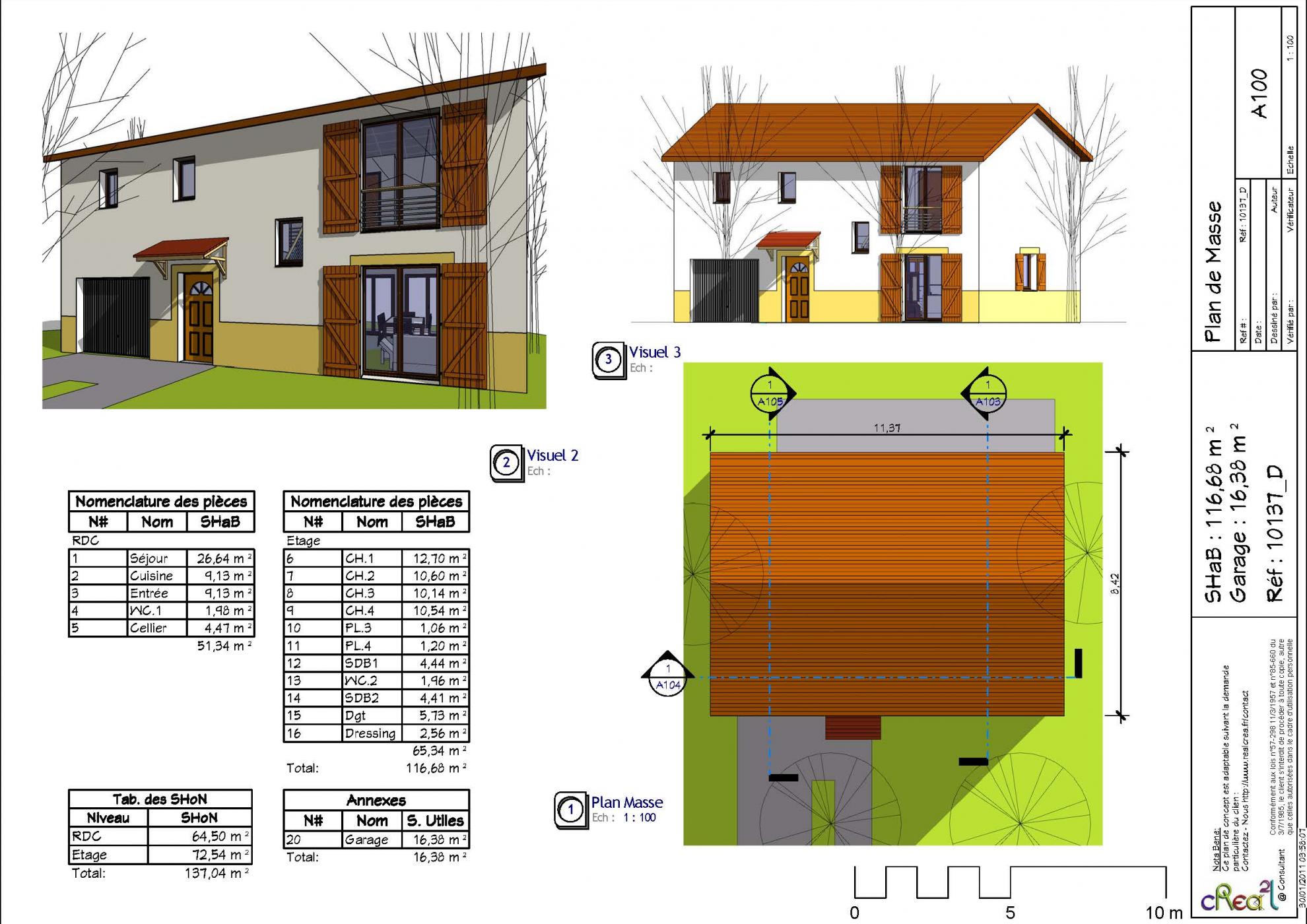 Plan 10137_D : Maison traditionnelle 3 chambres, 1 suite parentale, 116 m² habitables + Garage intégré.