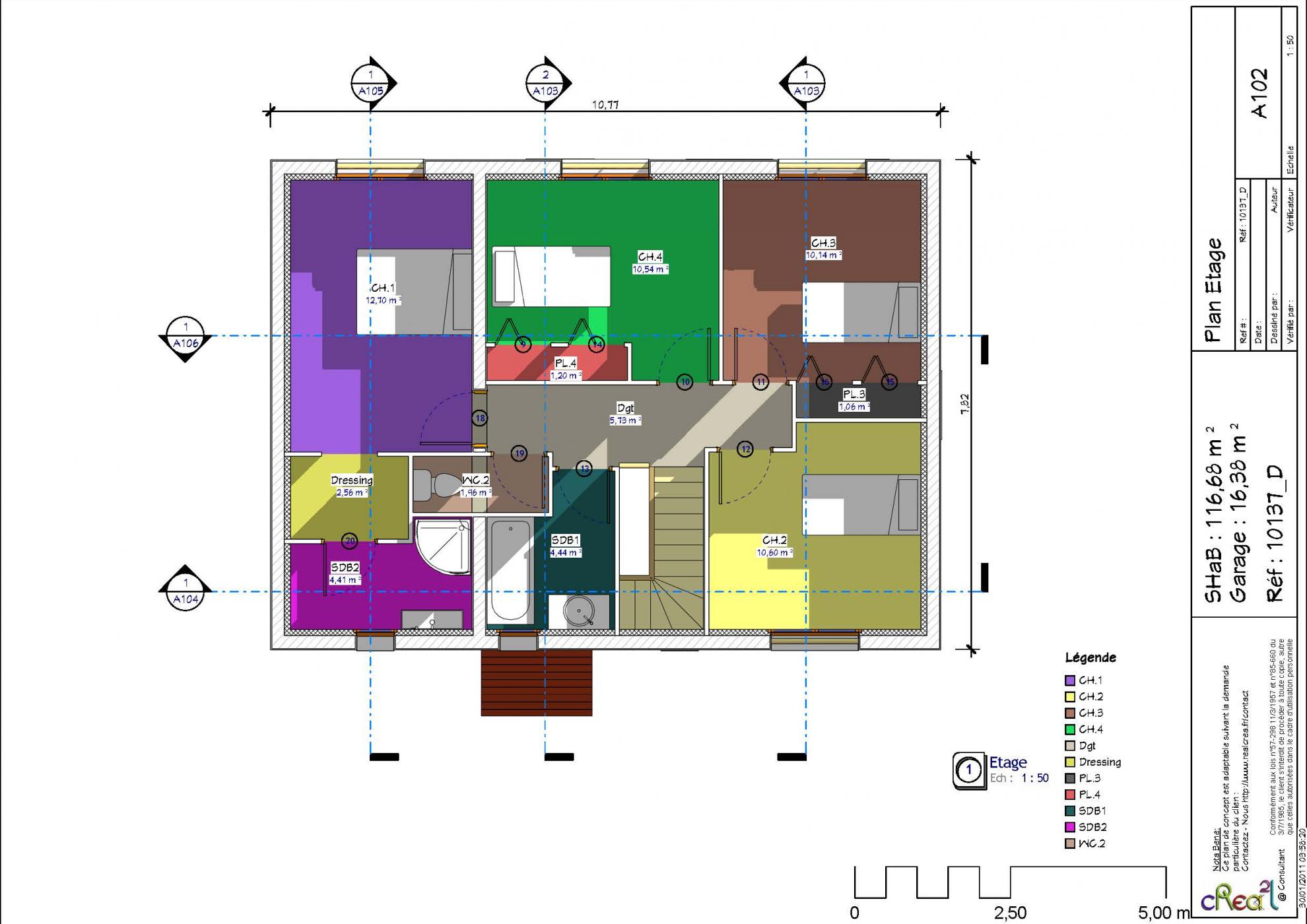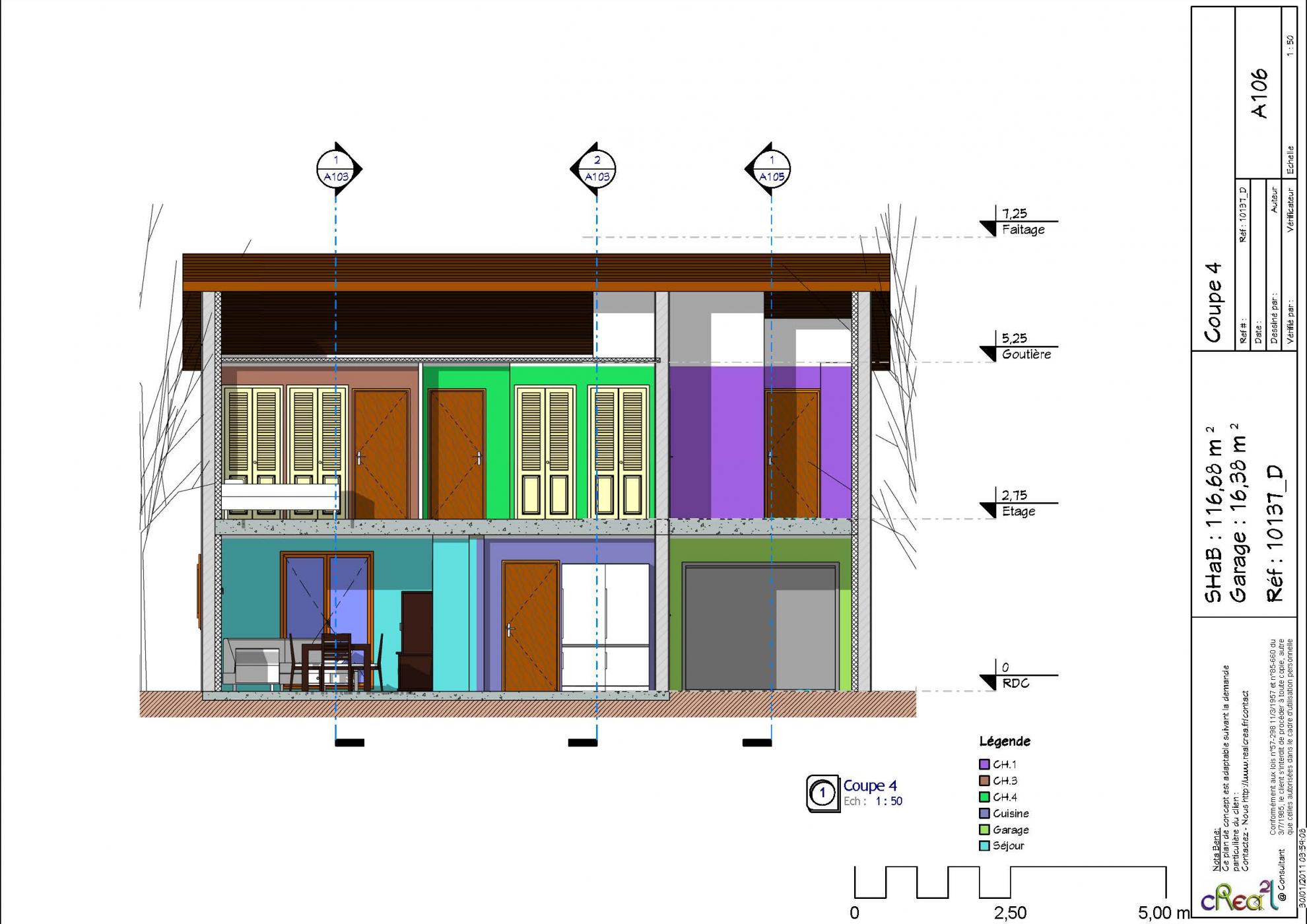 Plan Co_14183_D : Maison contemporaine R+1, 173 M², avec 15 Containers maritimes de 6 M, F5...