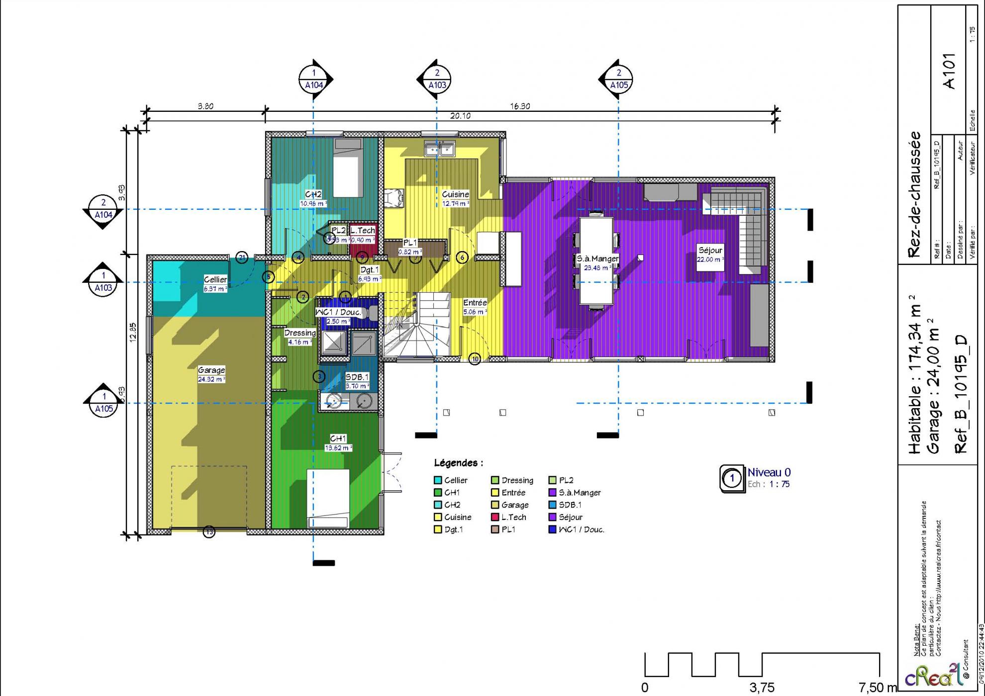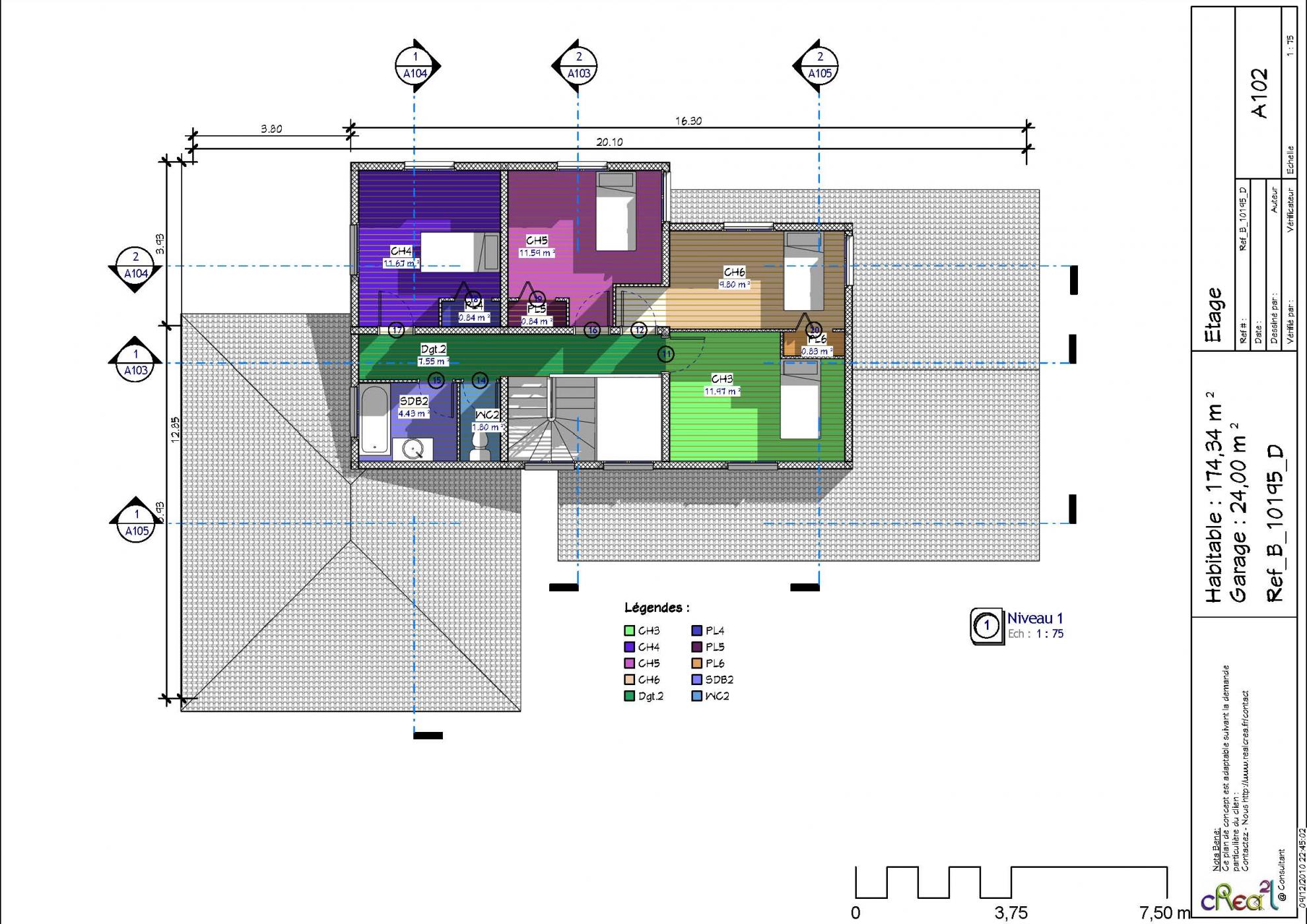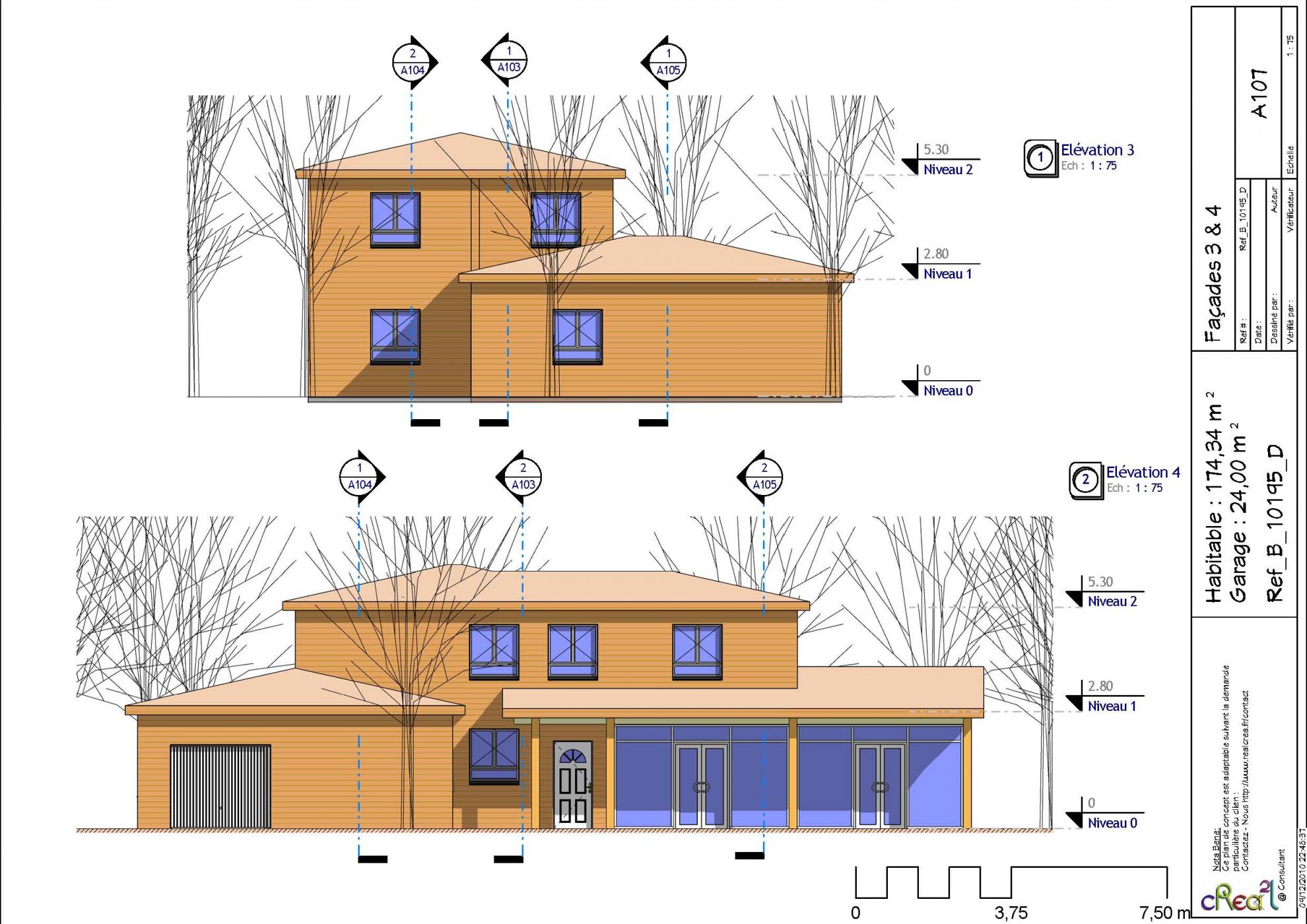 Plan B_10195_D : Maison en bois 5 chambres, 1 suite, 174 m² habitables + Garage intégré.