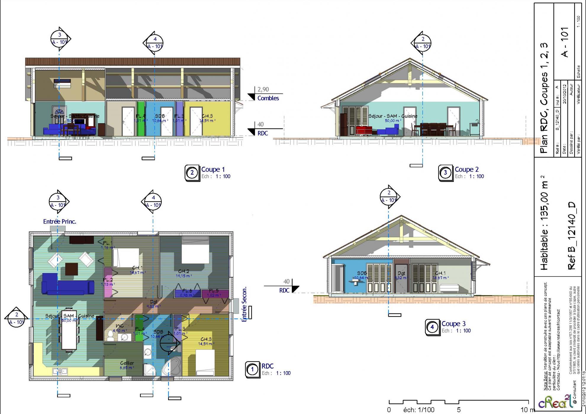Plan B_12141_D : Maison en bois moderne, plain-pied, 3 chambres, 135 m² habitable avec grand carport 2 places.