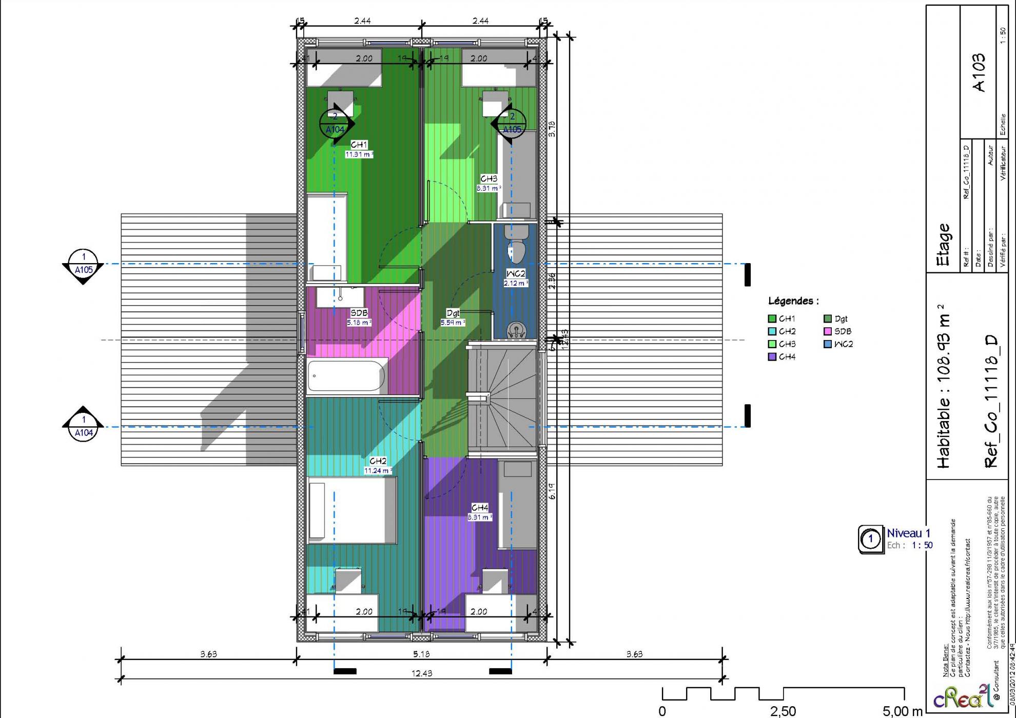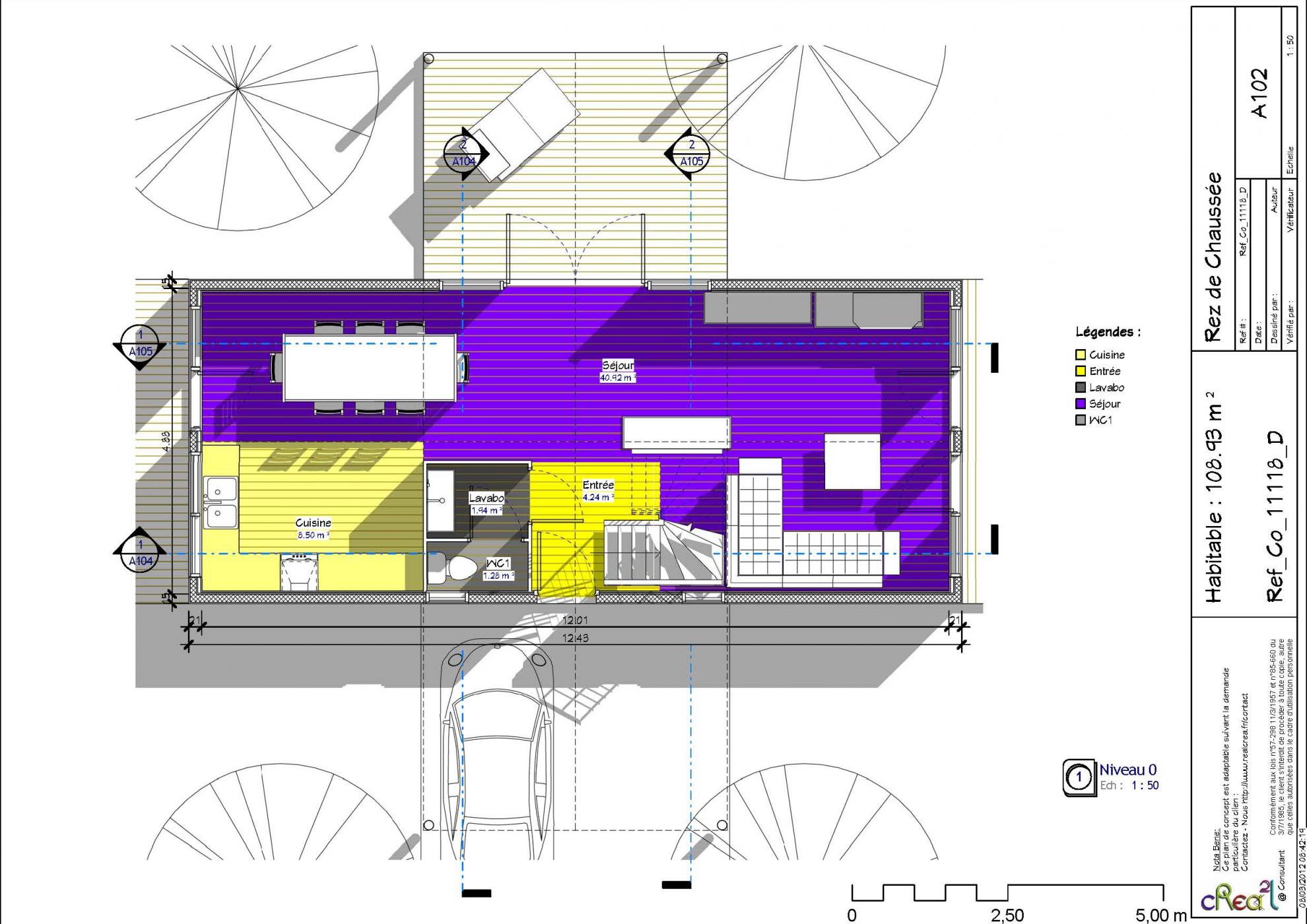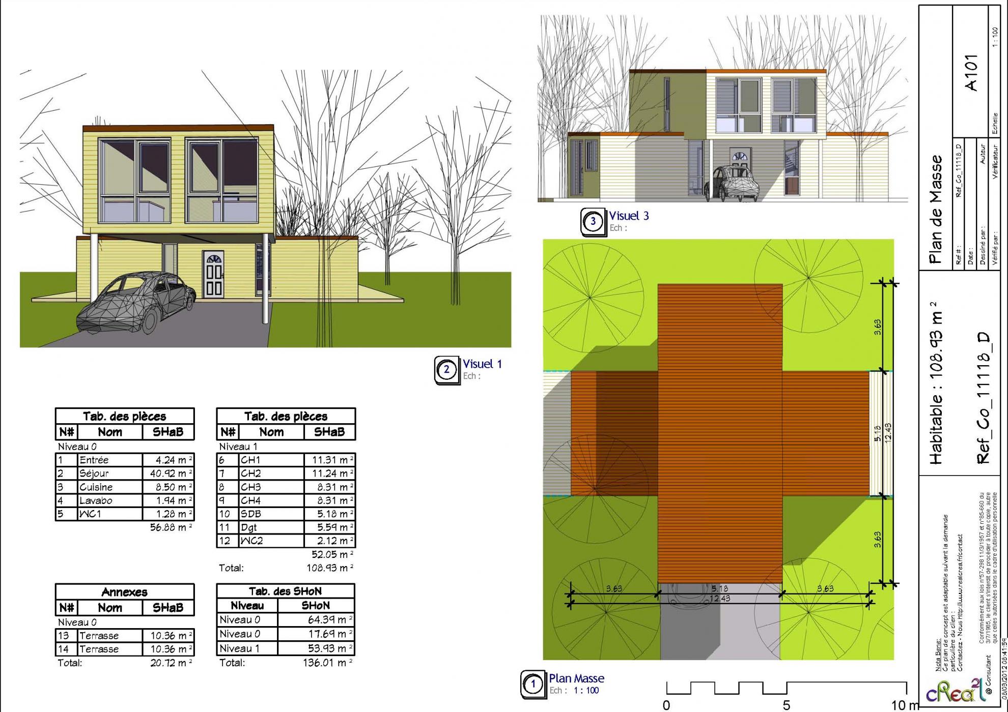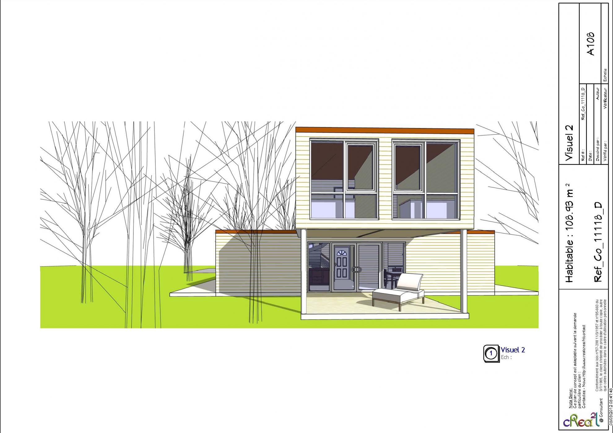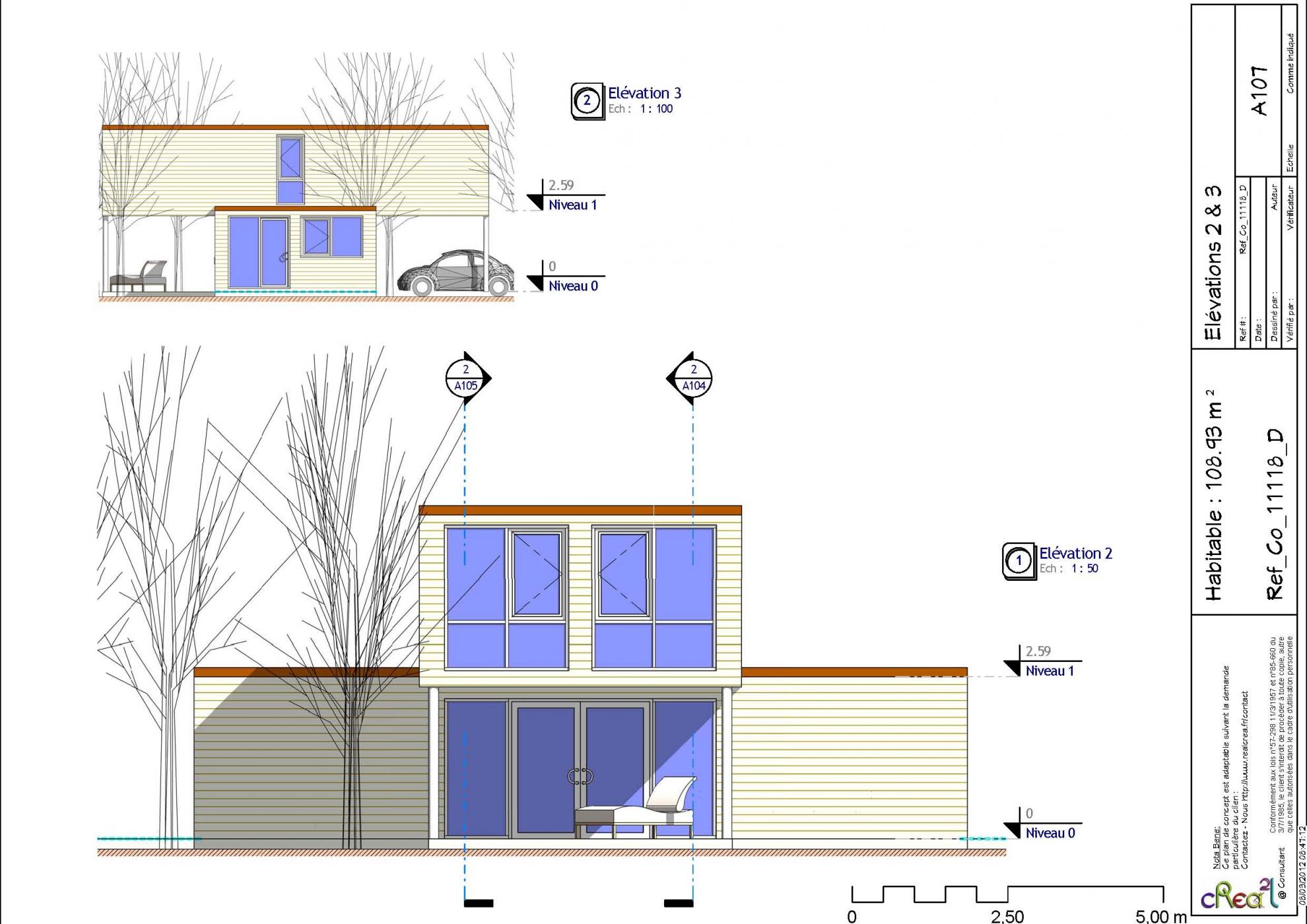Plan Co_11118_D : Maison container, R+1, 109 m² habitable, 4 chambres et l'abri automobile intégré