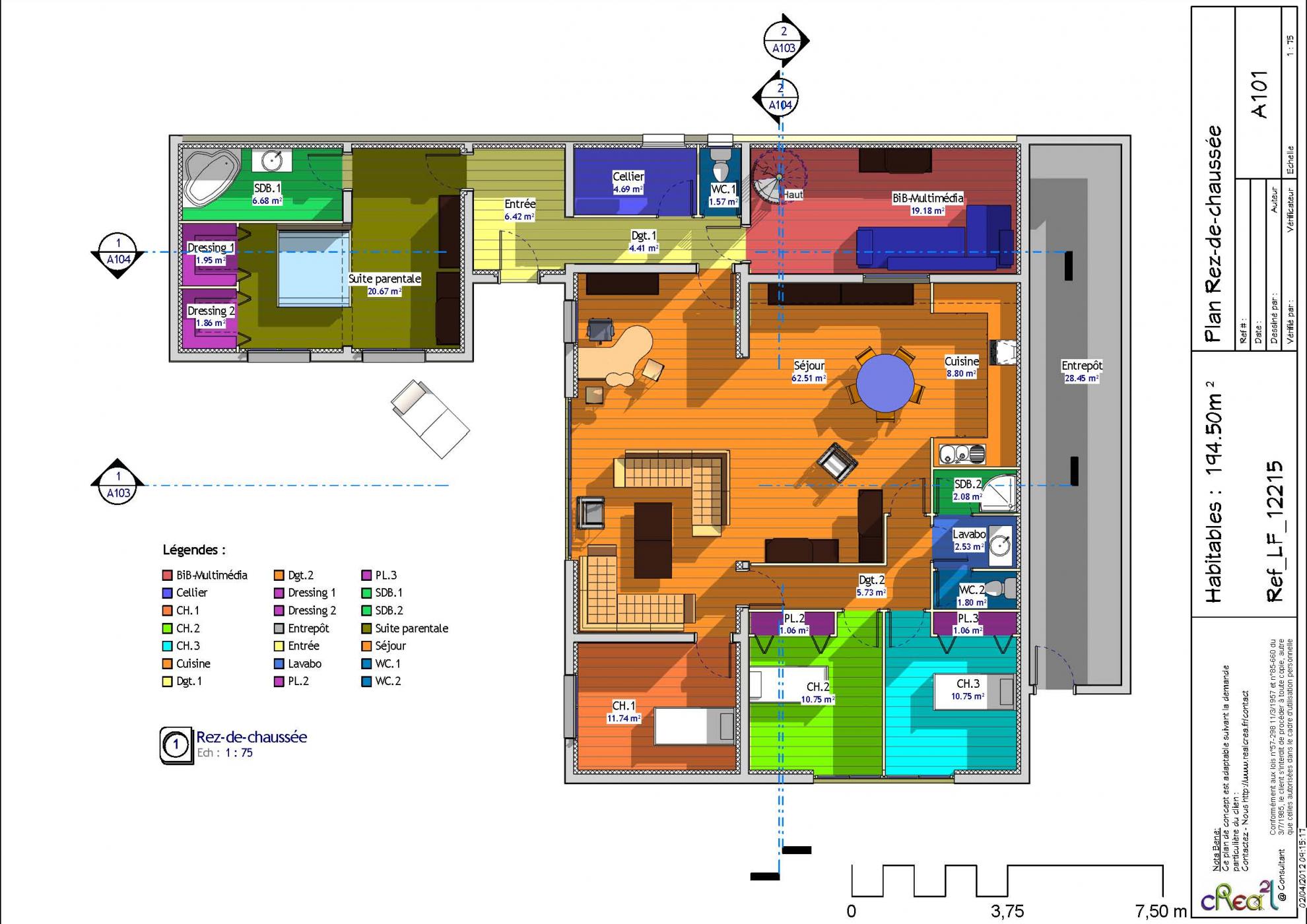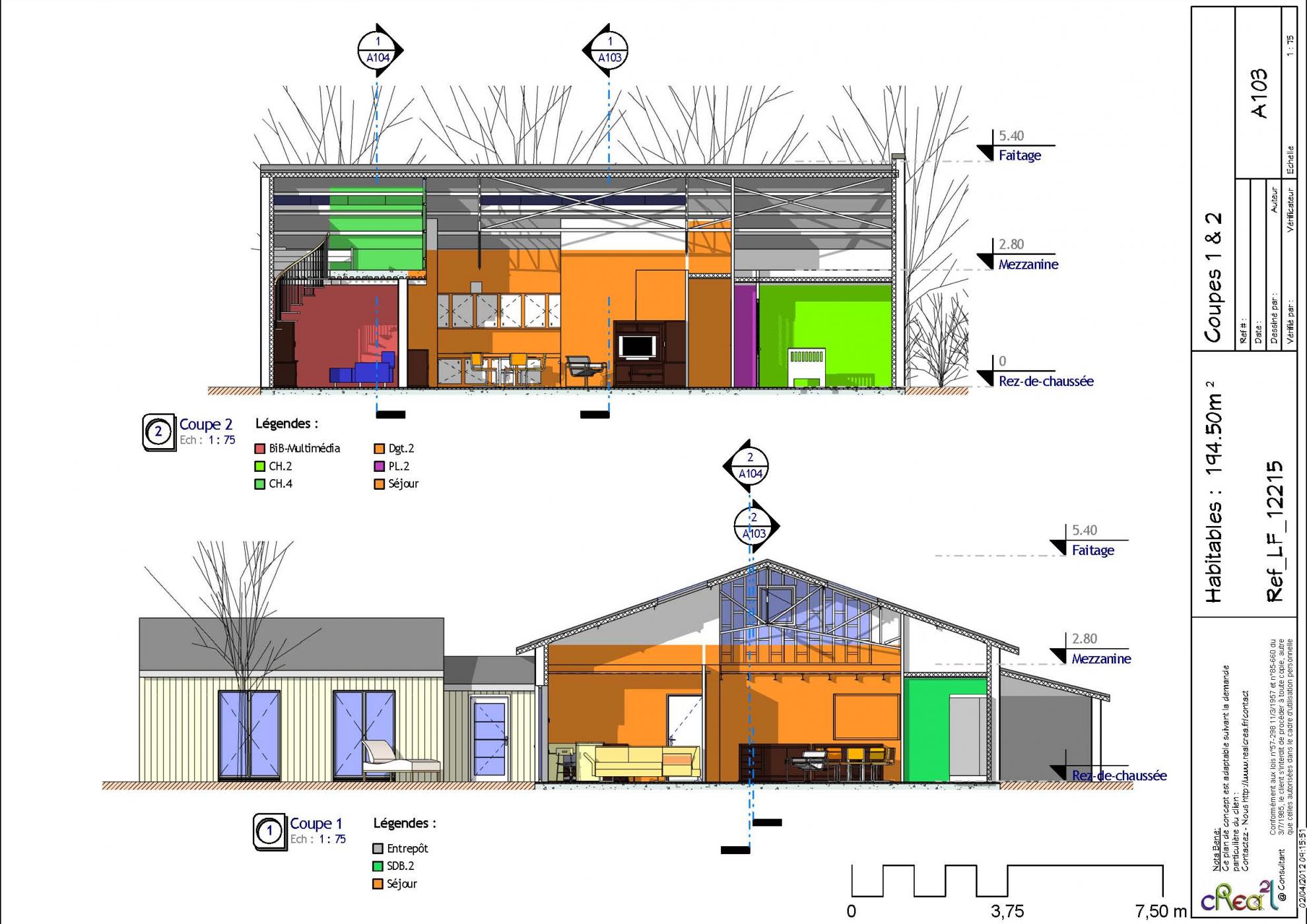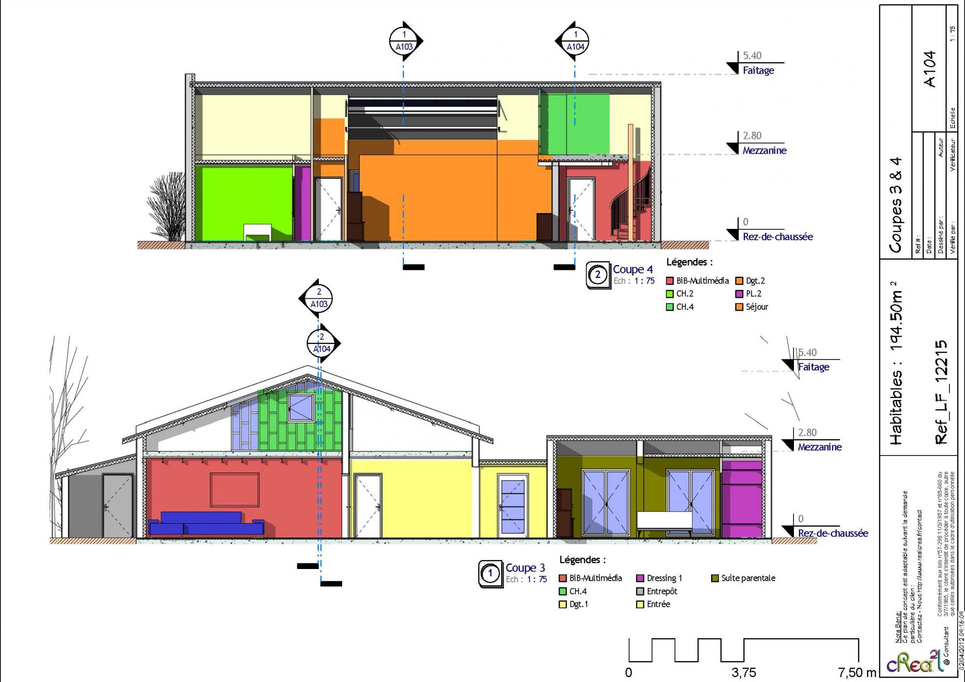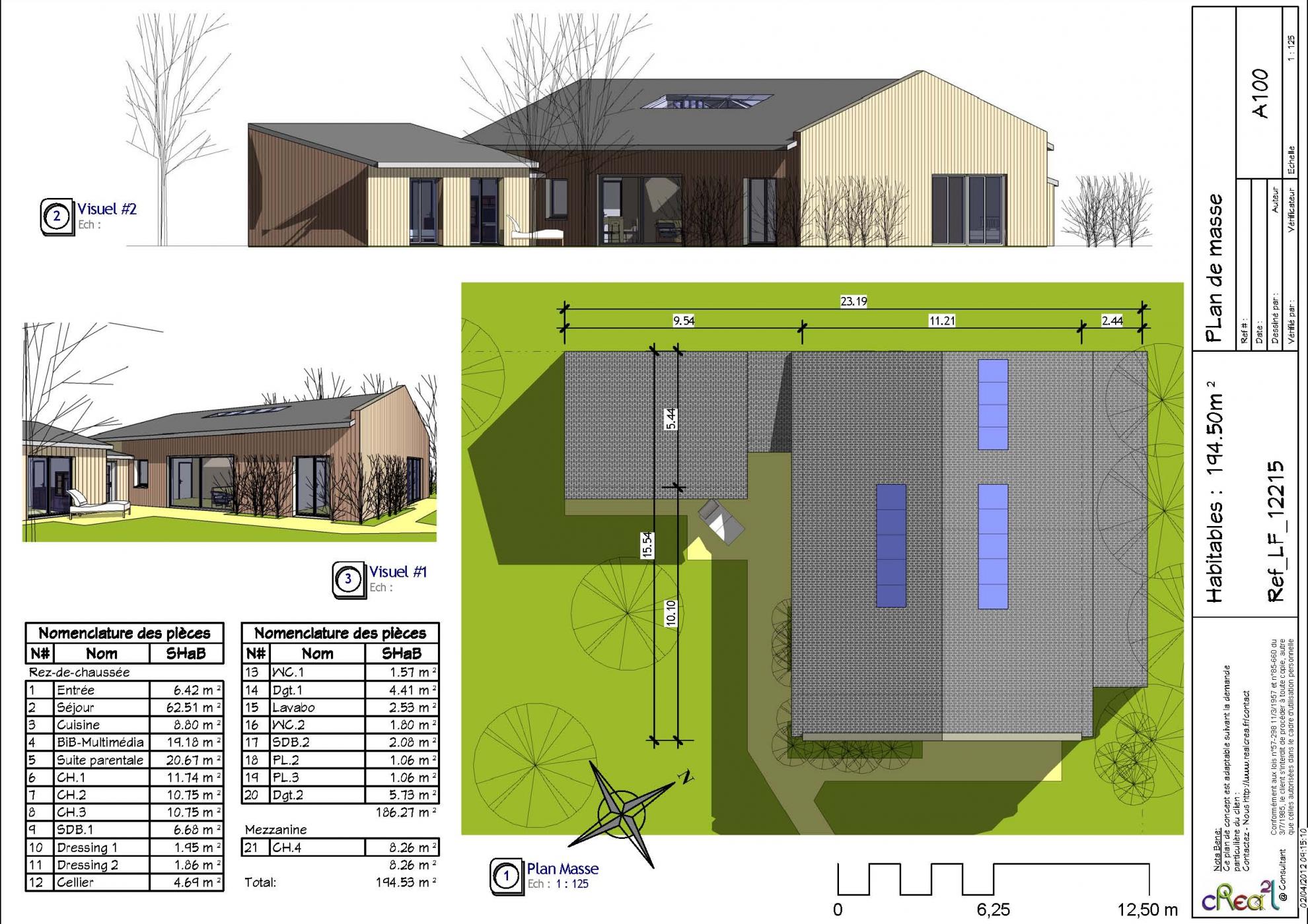 Plan LF_12215 : Maison loft moderne en plain-pied et mezzanine, 1 suite parentale, 4 chambres, 195 m² habitables.